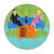 This Retro Couple with Cat Cutting Board features a cartoon couple trying to get cosy while watching television on a mid century modern, blue sofa. The cat, however, has other ideas. On one side of the sofa, there is a handsome man in a black suit with red tie. On the other side of the stylish couch, there is a beautiful, blonde woman in a form fitting, hot pink dress. Things would be going great if it weren't for the sleek black cat, which has laid claim to the centre sofa cushion. This 1960's style, minimalist art design is set in a stylish living room. The sofa's backdrop is a green, stone wall. On the aqua floor, there is a round, green shag rug, which matches the stone wall. At the forefront of the design, we see the back of an orange television set with rabbit ears, which seems to be playing the cat's favourite TV program.