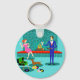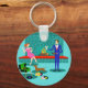 Retro Couple with Dog Button Keychain