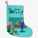 This Customisable Retro Couple with Dog Christmas Stocking looks like a scene out of a romantic comedy. The 1960s's style, minimalist art design features an attractive couple enjoying a romantic evening at home. The sophisticated room prominently features an aqua and teal brick fireplace with a bright red ledge. A beautiful, redhead woman wearing a bright, pink dress is perched on the ledge. She is enjoying a martini with a floating olive, a roaring fire, good music, and the company a tall, dark and handsome man. The man is wearing a blue suit and red tie. His martini glass is raised to toast his charming companion. In his other hand, he is holding a vinyl record album. At his feet, we see a most adorable dachshund wearing a red collar. The playful wiener dog is walking in the direction of a green record player with orange, spindle legs. On the floor, there is a colourful group of fun, eclectic, vinyl records. Personalise this kitschy holiday stocking with the name of the recipient. The opposite side features an aqua and teal brick pattern. Cheers! Here's to the perfect evening at home.