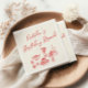 As you see this unique and elegant birthday brunch napkin has a well designed template. With red hand drawn brunch tableware of pancakes, floral bouquet, tea, cupcakes, wine bottle and glass, grapes and whimsical hand written name. All on cream background . Which you can customise easily by clocking on the personalise button.