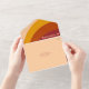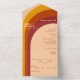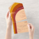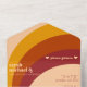 Classic vintage 70s retro colours with wavy curved arch striped lines all in one wedding invitation. Cool design with hippie colours cream, orange and red. Personalise it by adding the bride and groom name and wedding details.