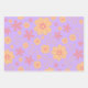 Retro Cute Floral and Pretty Plain Pink Wrapping Paper Sheets. Soft retro purple and gentle blue colours floral pattern mix and match with soft plain pink. Pretty, cute, and sweet flower pattern by Dreaming Cocoon. Best gift wraps for who are feminine and girly!
