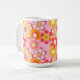 A lovely retro coffee mug with a pink hue and plenty of yellow and orange flowers! Perfect for a gift.