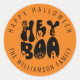 Retro Cute Hey Boo Halloween Ghost Spooky | Black Classic Round Sticker