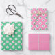 Retro Daisies Pink and Green Wrapping Paper Sheet