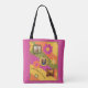 Here is a unique tote design featuring a three photo collage, with each picture placed in a hand drawn frame. You are able to add your own pictures and names to create a customised design that will be a keepsake for many years to come. The retro coloured background with daisy accents is trendy and modern. The pictures of horses can be replaced with any pet, making this a versatile design.
