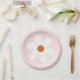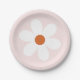 Retro inspired groovy one first birthday party plates with 70's style daisies and boho fonts and colours.
