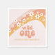 Retro inspired Wild One first birthday napkins with 70's style daisies and boho fonts and colours.