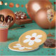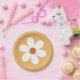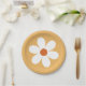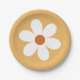 Retro inspired groovy one first birthday party plates with 70's style daisies and boho fonts and colours.