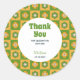 Retro Daisy Floral Chequered Green Thank You Classic Round Sticker