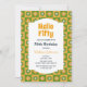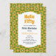 Retro Daisy Floral Chequered Hello Fifty Birthday Invitation