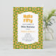 Green and yellow retro groovy daisy flower in chequered box pattern Birthday Invitation.