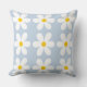 Baby Blue Retro Daisy Floral Pattern throw pillow cushion