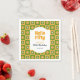 Green and yellow retro groovy daisy flower in chequered box pattern Birthday paper napkin.