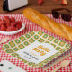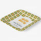 Green and yellow retro groovy daisy flower in chequered box pattern Birthday paper plate.