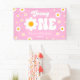 This is a Pink Retro Daisy Flower Groovy One 1st First Birthday Party Banner.