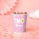 This is a Pink Retro Daisy Flower Two Groovy 2nd Birthday Party Paper Cups.