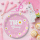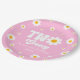 This is a Pink Retro Daisy Flower Two Groovy 2nd Second Birthday Party Paper Plates.
