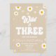 Retro Daisy Flower Wild & Three 3rd Birthday Party Invitation