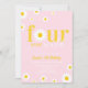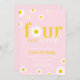 Retro Daisy Four Ever Wild Pastel Pink and Yellow 4th Birthday Invitation.