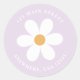 Retro inspired first birthday return address labels with 70's style daisies and boho fonts and colours.