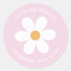 Retro inspired first birthday return address labels with 70's style daisies and boho fonts and colours.
