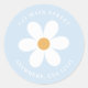 Retro inspired first birthday return address labels with 70's style daisies and boho fonts and colours.