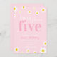 Retro Daisy Pastel Pink Minimal 5th Birthday Invitation