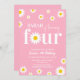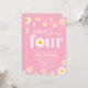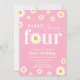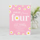 Retro Daisy Pastel Pink and White 4th Birthday Invitation