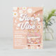 Celebrate in groovy style with this retro 1960s-inspired birthday party invitation featuring a peach background, white daisies, stars, butterflies, and a rainbow design. A pink vintage van with a peace sign sets the tone for peace, love, and fun. Perfect for kids birthdays, this customisable invitation adds a playful, nostalgic vibe to your celebration. Personalise with party details and create a unique keepsake that guests will love.
