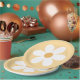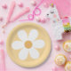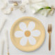 Retro inspired first birthday plates with 70's style daisies and boho fonts and colours.