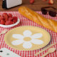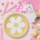 Retro inspired first birthday plates with 70's style daisies and boho fonts and colours.