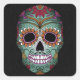 Retro Day of the Dead Sugar Skull on Leather Square Sticker