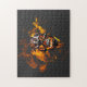 Retro Dead Burning skeleton Skull in Fire Jigsaw Puzzle