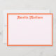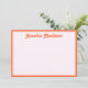 Send your correspondence in style with this eye-catching personalized note card, bathed in a vibrant retro color palette of warm orange and playful pink. This card makes a memorable impression by featuring your name in the bold and stylish "Tango" decorative font, adding a touch of personal flair to every message. It's an ideal choice for school teachers, small business owners needing a chic thank-you note, or anyone who appreciates a beautiful card for their personal notes.