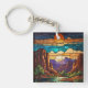 Retro desert scene Sedona mountains stainglass art Key Ring