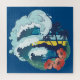 Retro design of beach, palm trees and ocean waves jigsaw puzzle