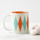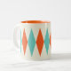 Retro Diamond Pattern Aqua and Orange Two-Tone Coffee Mug