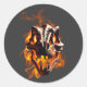 Retro Dinosaur Dead Burning Skull in Fire Classic Round Sticker