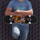 Retro Dinosaur Dead Burning Skull in Fire Skateboard