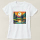 Pretty vintage sunset retro disc golf, pine trees, mountains and a reflection in the lake ai art.