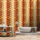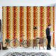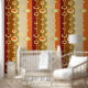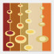 Ovals and stripes in deep red and orange to mustard and creamy yellow
