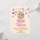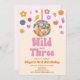 This is a Retro 70's Vintage Disco Ball Hippie Wild and Three 3rd Birthday Party Invitation.