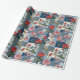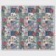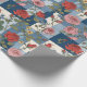 Retro Distressed Denim Patchwork and Roses Floral Wrapping Paper
