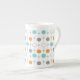 This customisable Retro Dots and Starbursts Bone China Mug design features (Wait for it.) a grid of colourful dots and starbursts. The vintage inspired turquoise; white, grey, and orange dots are separated by kitschy grey starbursts to form a geometric pattern. Customise the background colour on this mid century modern product if you're feeling daring, or leave it white if subdued is more your style. You're sure to enjoy our homage to the 1950s. Buy this today and be the coolest cat on your block.