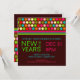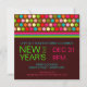 Colourful circles on a contemporary brown background creates a retro look and makes a cool invitation for your New Years Eve party!