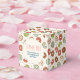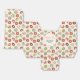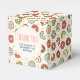 A tiny favour box (2 inch x 2 inch) with a cute pattern featuring doughnuts tumbling all around. Pink, green, brown and cream colours really give this design a cool retro feel. A circle layered over top with your text inside.