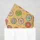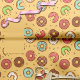 Cute, doughnut pattern with various styles of doughnuts, some iced with pink, green, blue, white or chocolate drizzle icing. Some doughnuts have sprinkles and some are broken. This retro, iced, doughnut pattern is on an orange background, and it is ideal for decoupaging craft supplies and gift wrapping.