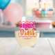 Celebrate the bride-to-be with these trendy and unique stemless wine glasses. This pink and peachy orange "drunk in love" retro themed stemless wine glass is customisable with your recipient's name. These make perfect and memorable party favours!