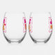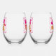 Celebrate the bride-to-be with these trendy and unique stemless wine glasses. These pink and peachy orange "drunk in love" and "just drunk" retro themed set of wine glasses are customisable with your own details. These make perfect and memorable party favours!